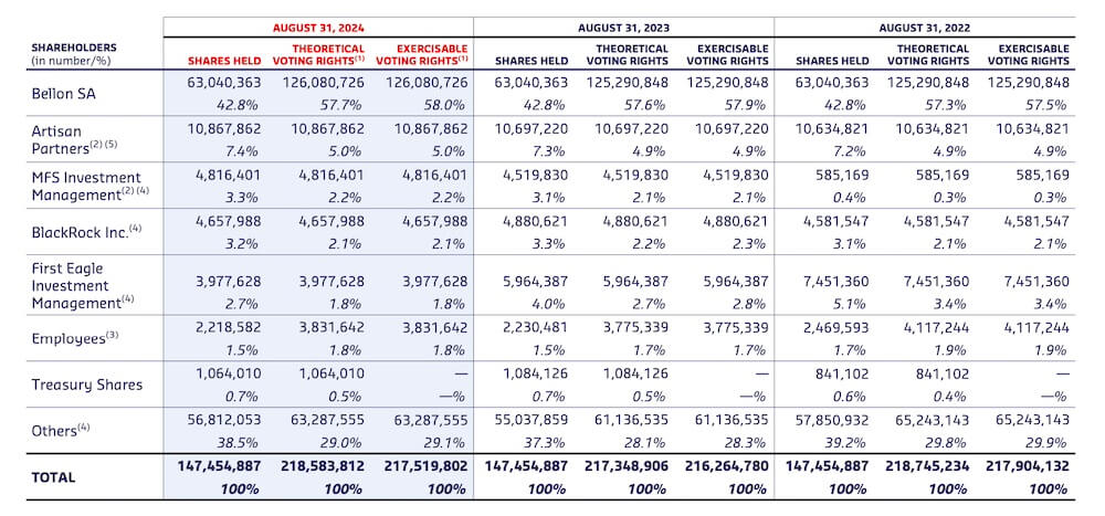 Shareholder breakdown as of August 31, 2024: